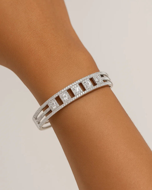 Open Cuff Bracelet with Geometric CZ Stones – Premium Women’s Jewellery