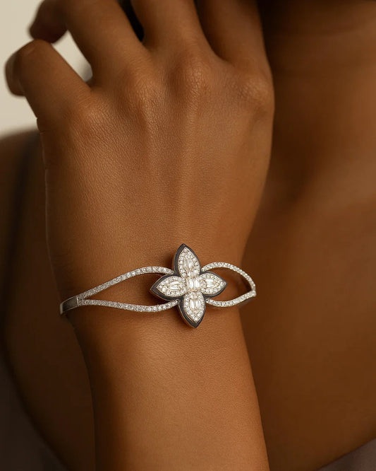 Paisley Bracelet with Floral Motif & CZ Stones – Elegant Designer Jewelry