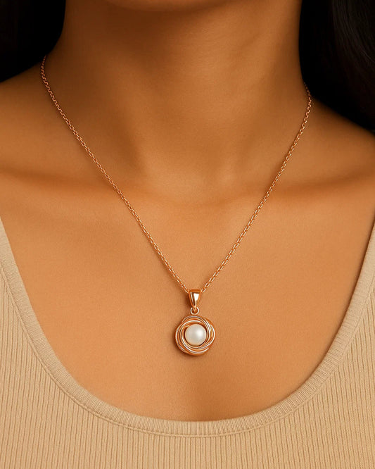 Elegant Rose Gold Pendant Necklace with Pearl Center