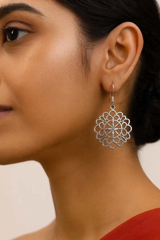 Silver Mandala Drop Earrings