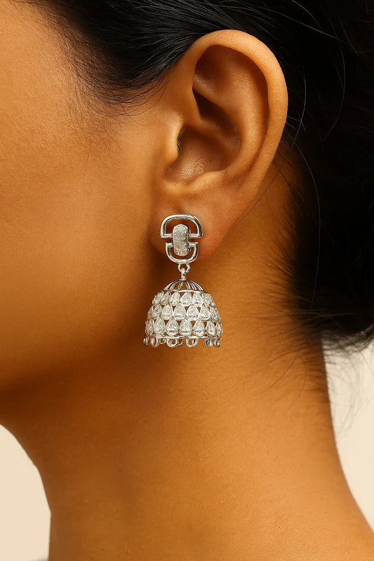 Silver Crystal-Studded Jhumka Earrings