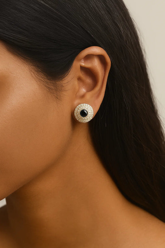 Silver Black Onyx & Crystal Halo Studs