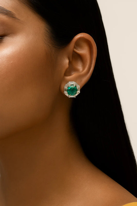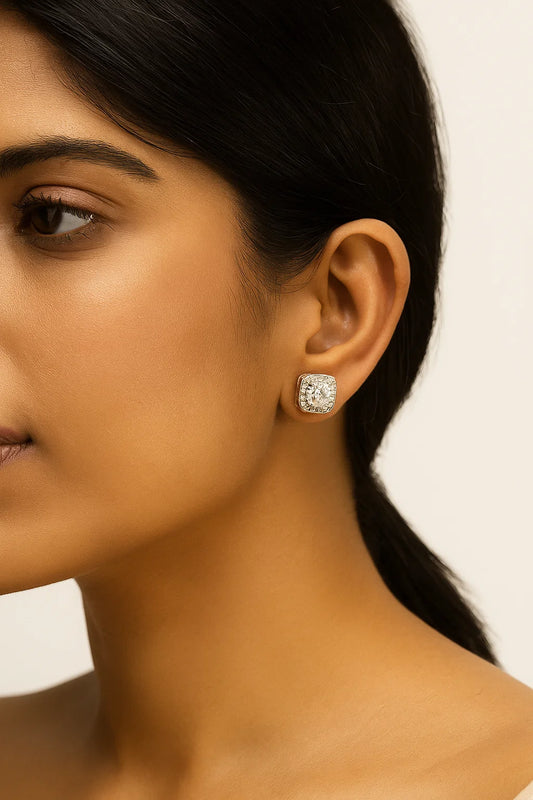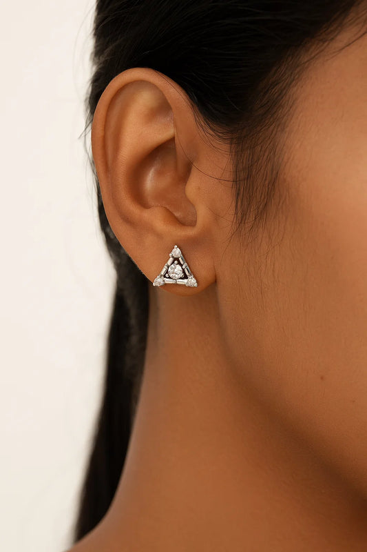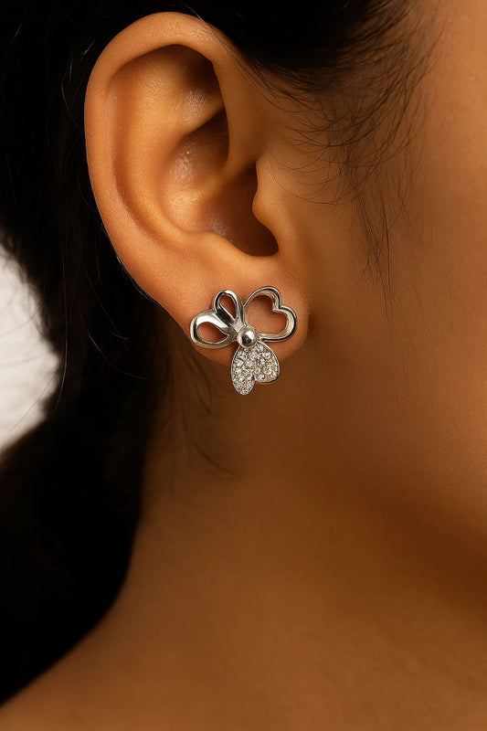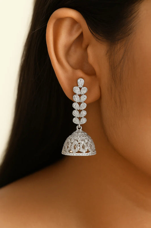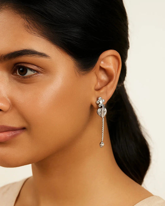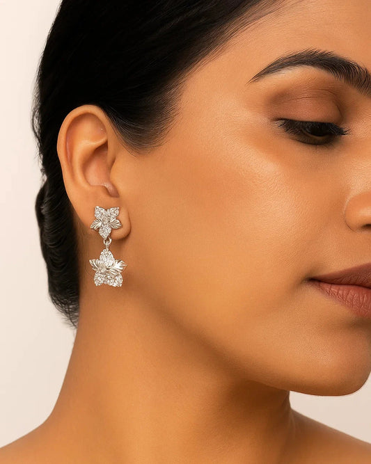 Silver Dual Bloom Floral Drop Earrings with CZ Accents