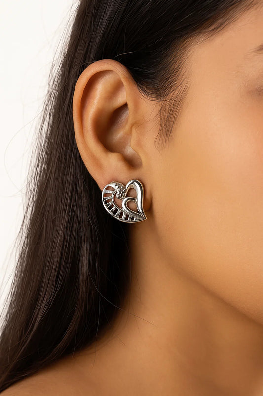 Silver Heart Chain Drop Earrings with CZ Sparkle