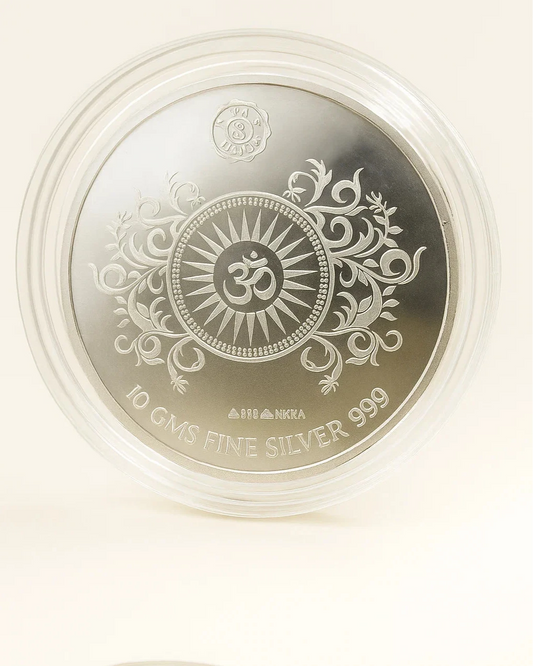 3-Color Spiritual Coin Set – 5gm Each | Gold, Silver & Rose Gold Lotus Hands Design Gift Box
