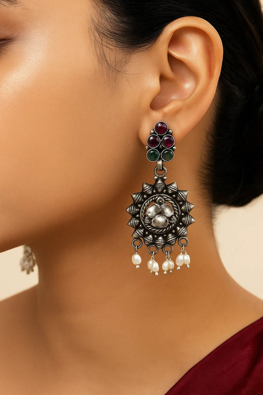 Rudraksha Mala with Silver Beads and Lord Shiva Pendant – Spiritual Rosary for Meditation & Pooja