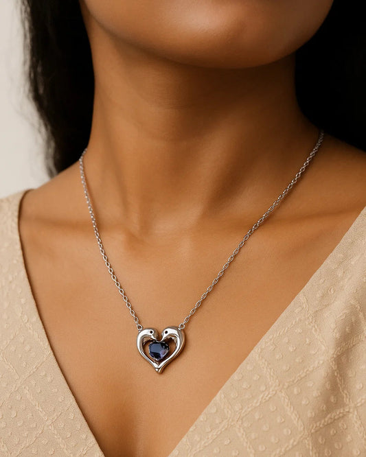 Dolphin Heart Pendant with Blue Crystal – Elegant Symbol of Love & Harmony