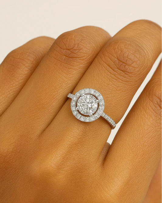 Halo Ring with Round Brilliant-Cut Cubic Zirconia