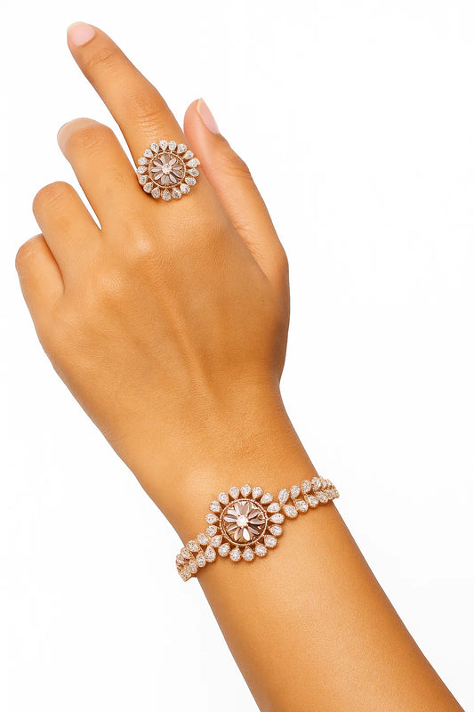 Rose Gold Plated Floral Design Bracelet & Ring Set