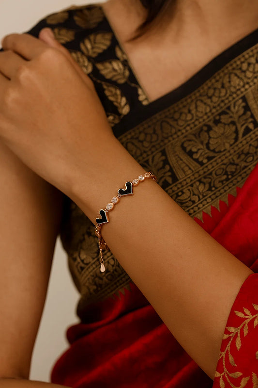 Rose Gold Heart & Infinity Bracelet with Black Enamel