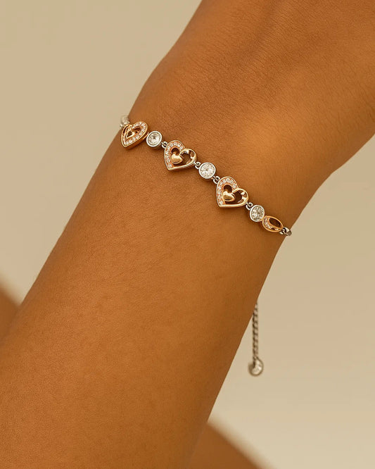 Dual Tone Heart Design Rose Gold & Silver Adjustable Bracelet