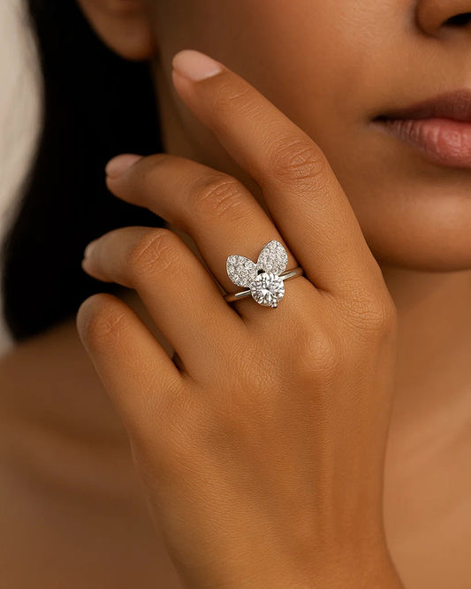 Adjustable Ring & Open Cuff Bracelet Combo with Oval-Cut Zircon Stones