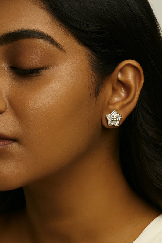 Green Peridot & Diamond Halo Floral Stud Earrings for Women